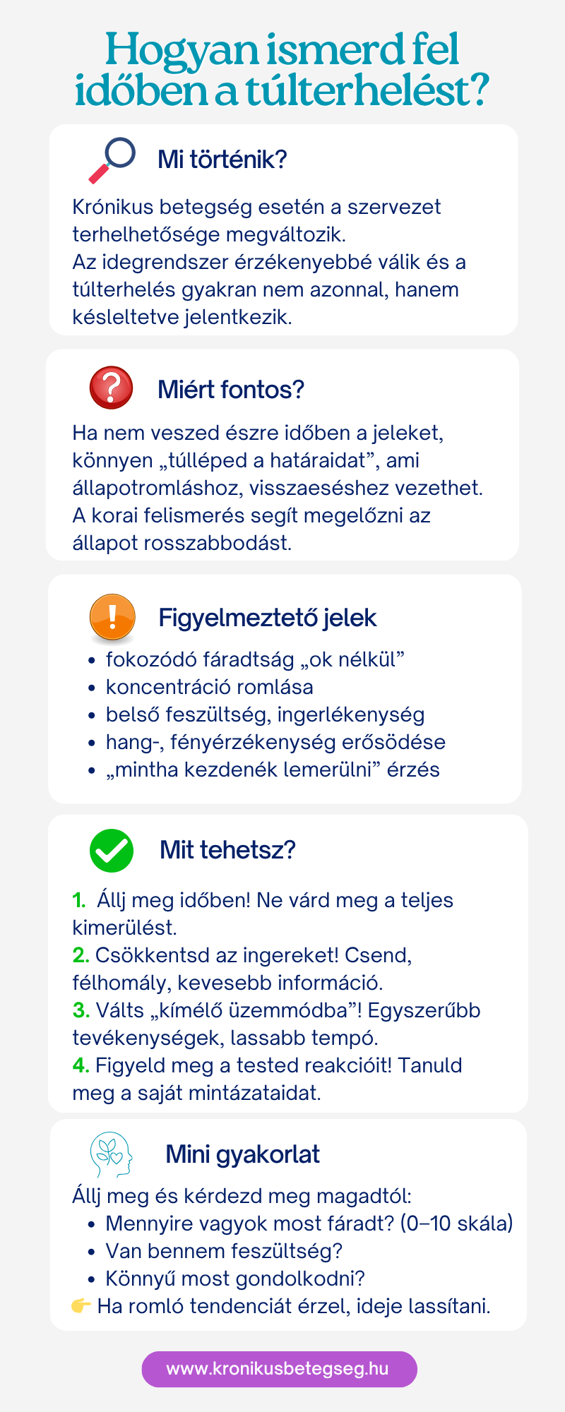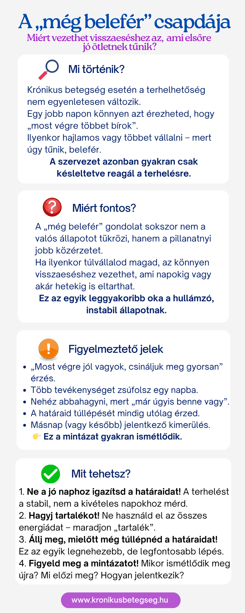 Infografikák és edukatív anyagok, amelyek segítenek eligazodni a krónikus betegséggel való együttélés mindennapi kérdéseiben.